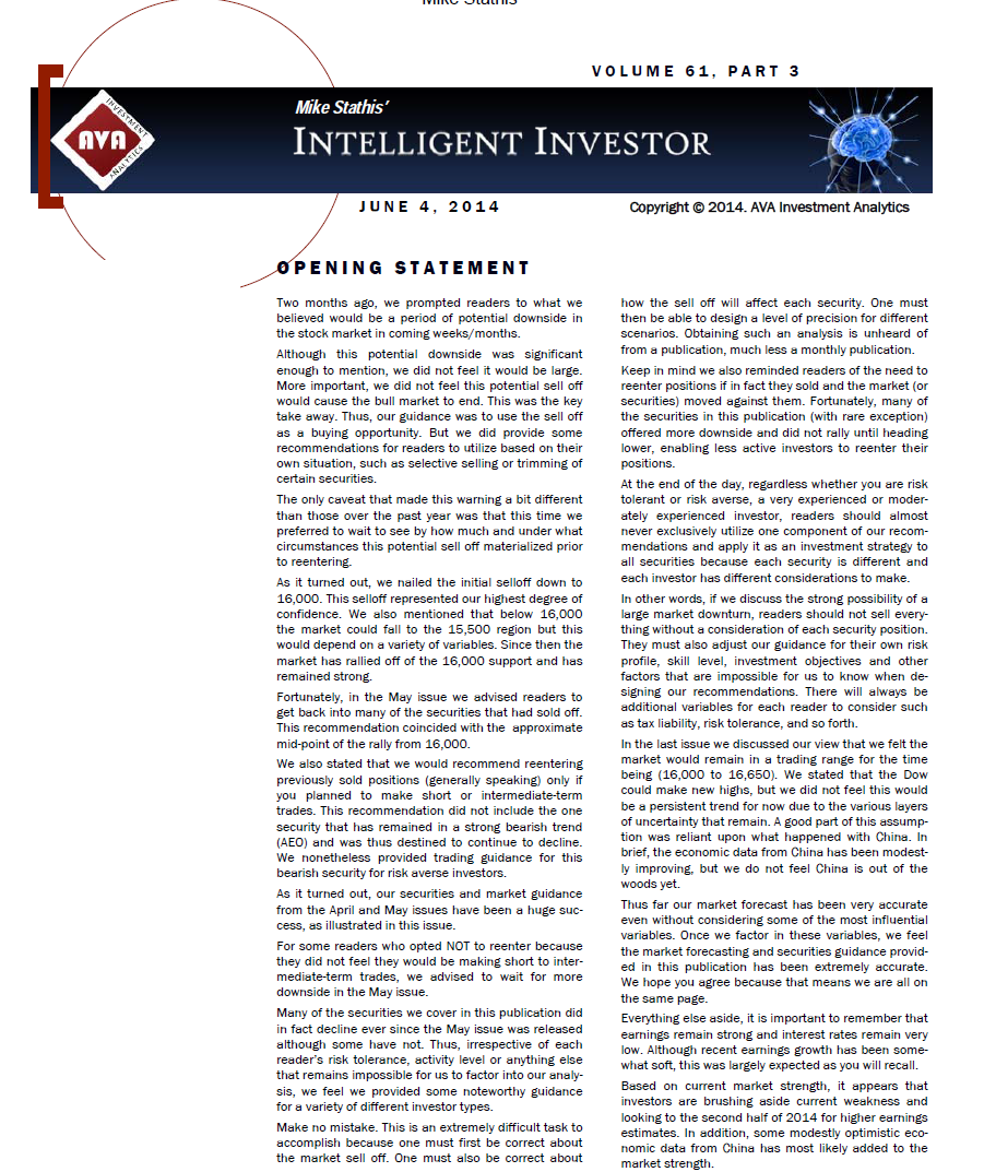 Opening Statement from April 2014 Intelligent Investor (Part 3) First published on April 4, 2014 for subscribers to the Intelligent Investor In the Market Forecasting section (Part 2...