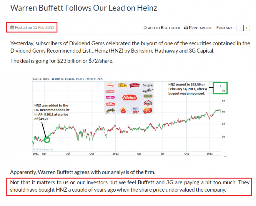 2) Fundamental Analysis - Recommended Heinz Before Buffett Got Involved