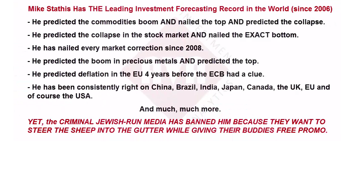 That’s right. Mike Stathis accurately forecast the recent market selloff AGAIN. Yet, he continues to be banned by ALL MEDIA. Instead the criminal media feeds its unfortunate vic......