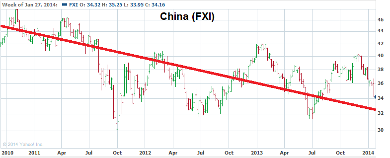 The following charts show the major market ETFs for China, India and Brazil from September 2010 to January 27, 2014.