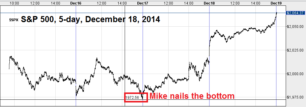 That means he nailed every single market selloff in 2014 - all seven (7) of them. He nailed the smaller three (3) in the first half of the year. And he nailed the larger four (4) selloffs which took place beginning in July.